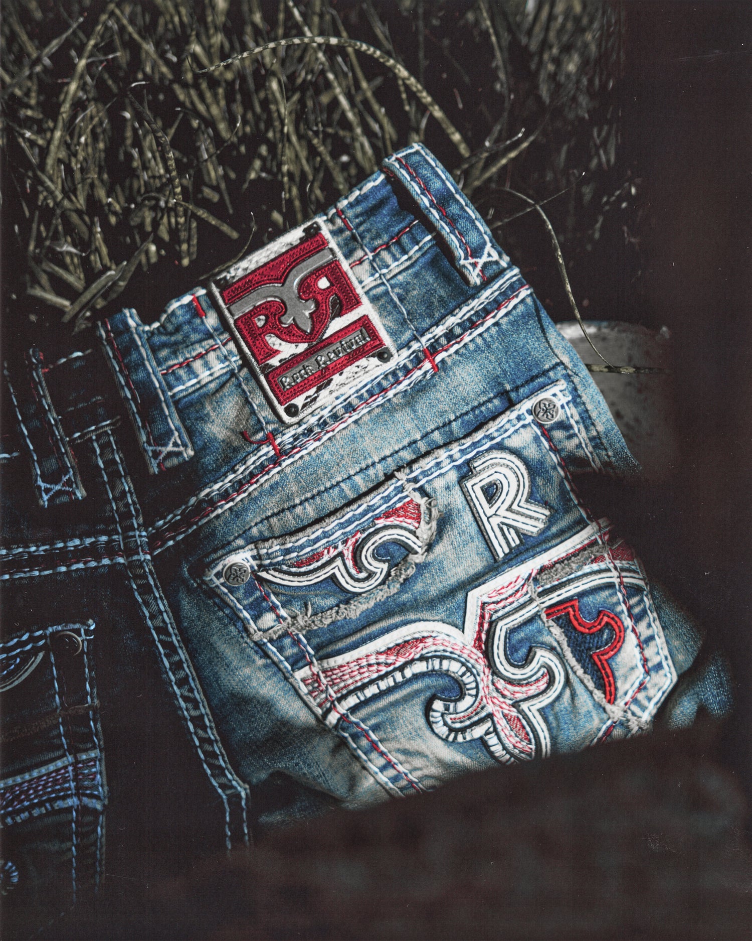 The Rock Revival® low-rise—offered in bootcut, skinny, and skirt—sits low on the...