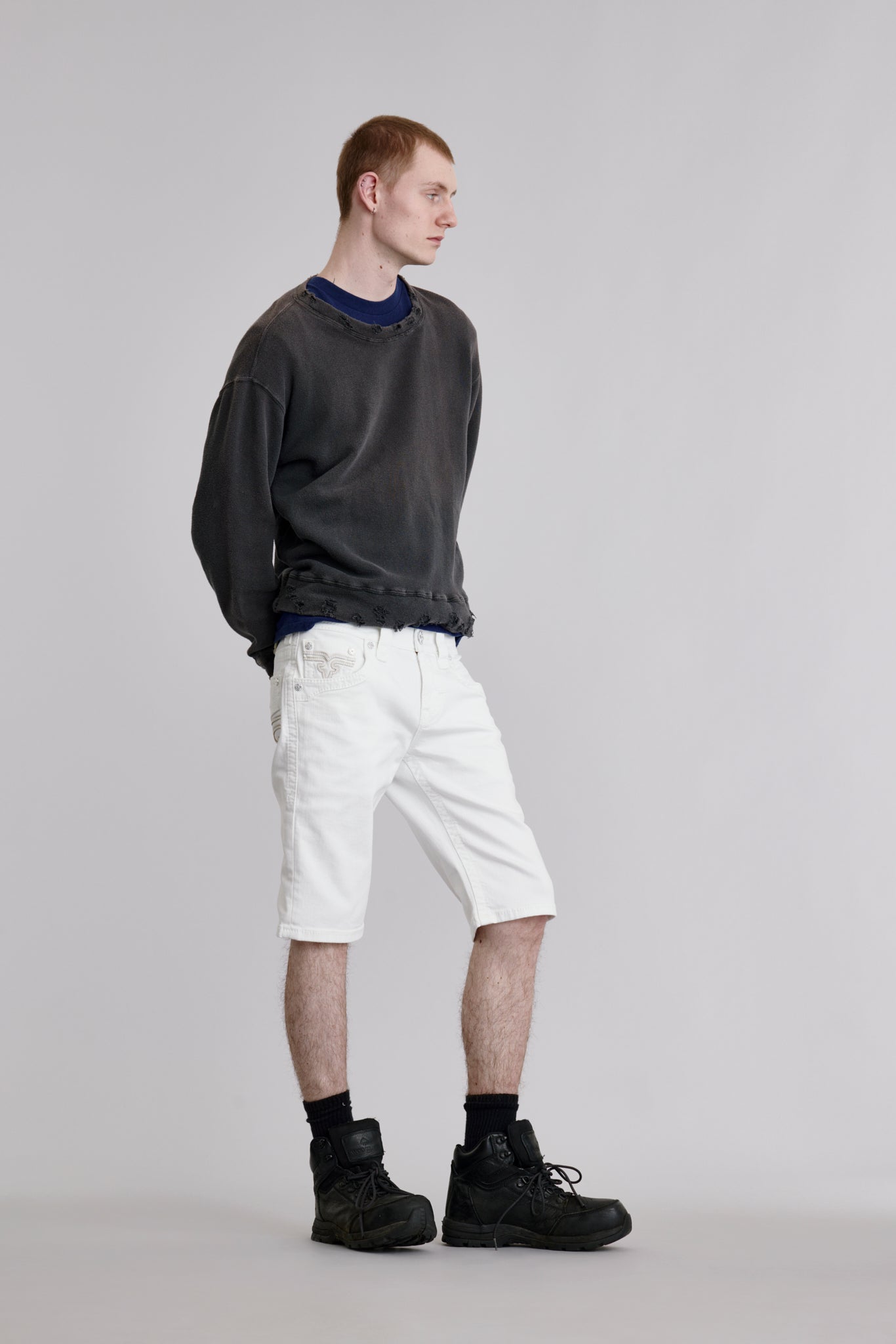 Arther Denim Shorts by Rock Revival crafted in a white wash, designed in Los Angeles.