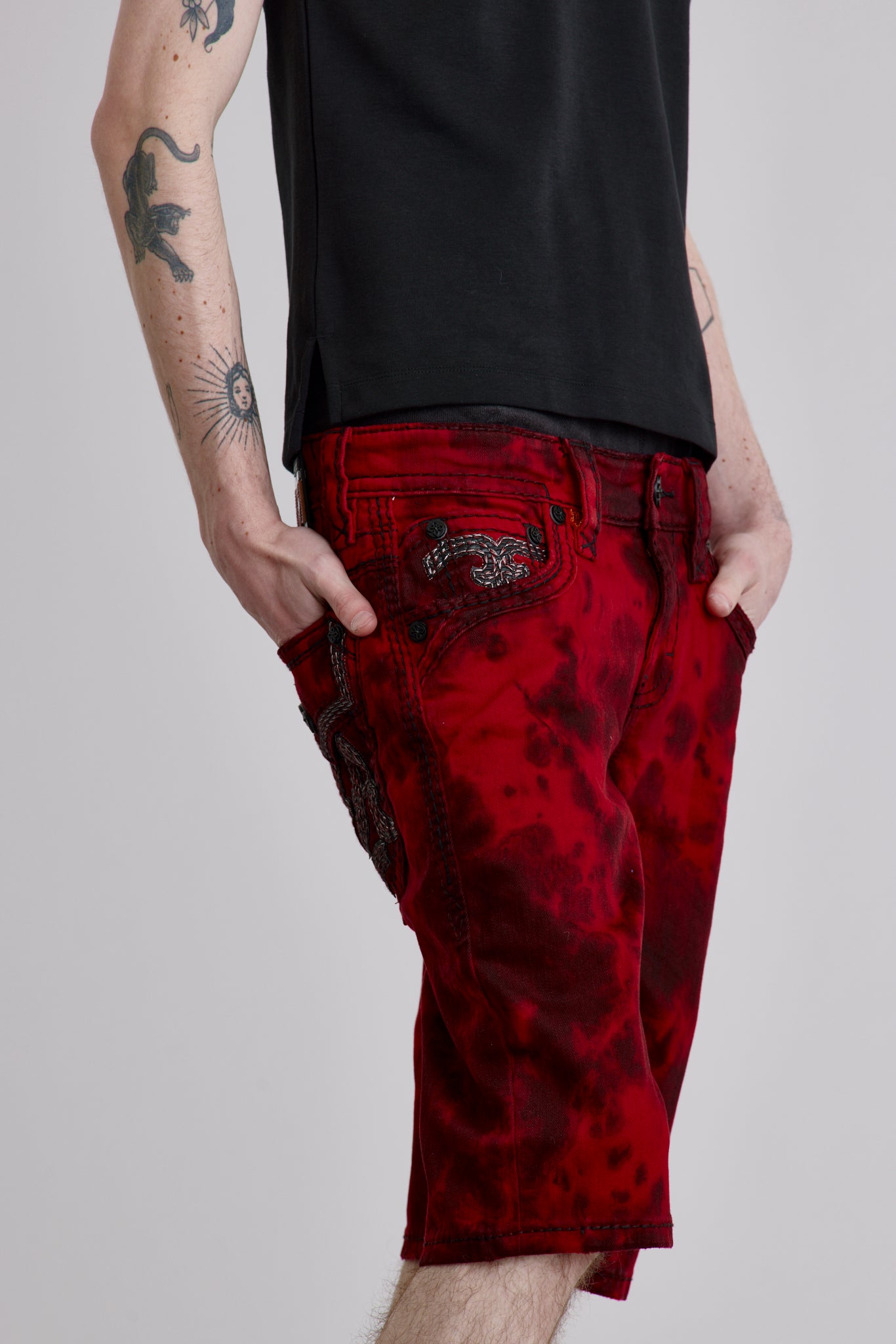 Garlyn Denim Shorts by Rock Revival features a mid rise crafted in a tie dye wash, designed in Los Angeles.